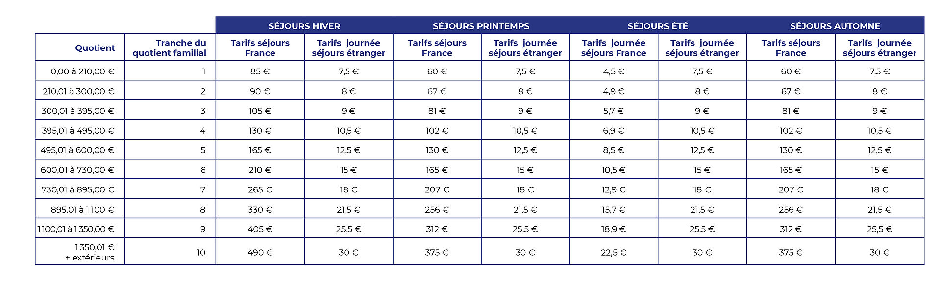- Avoir fait calculer son quotient familial. Les tarifs sont calculés en fonction du quotient familial qui permet d'ajuster le coût des prestations selon les revenus et la composition de la famille.